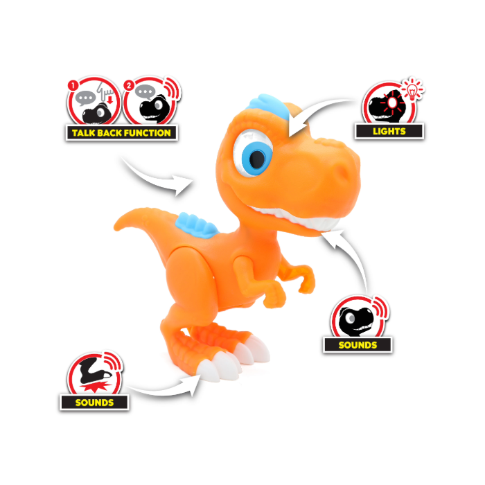 Dječja igračka dinosaura nikada nije bila zabavnija! Ovaj T-Rex snima govor i reproducira ga pa ćeš imati osjećaj kao da razgovara s tobom (onoliko koliko jedan dinosaur može govoriti, naravno!).