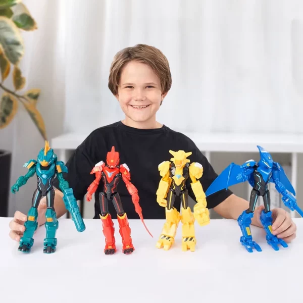 Dinoster linija nudi inovativne transformirajuće setove koji spajaju dinosauruse i robote u nevjerojatne kombinacije. Svaki set omogućuje višestruke načine igre – od pojedinačnih Dino-botova do impresivnih Mega-transformera kada se spoje različiti modeli. Zahvaljujući preciznom dizajnu i kompatibilnosti setova, mališani mogu neprestano otkrivati nove mogućnosti slaganja i nadogradnje svojih omiljenih dino robota.