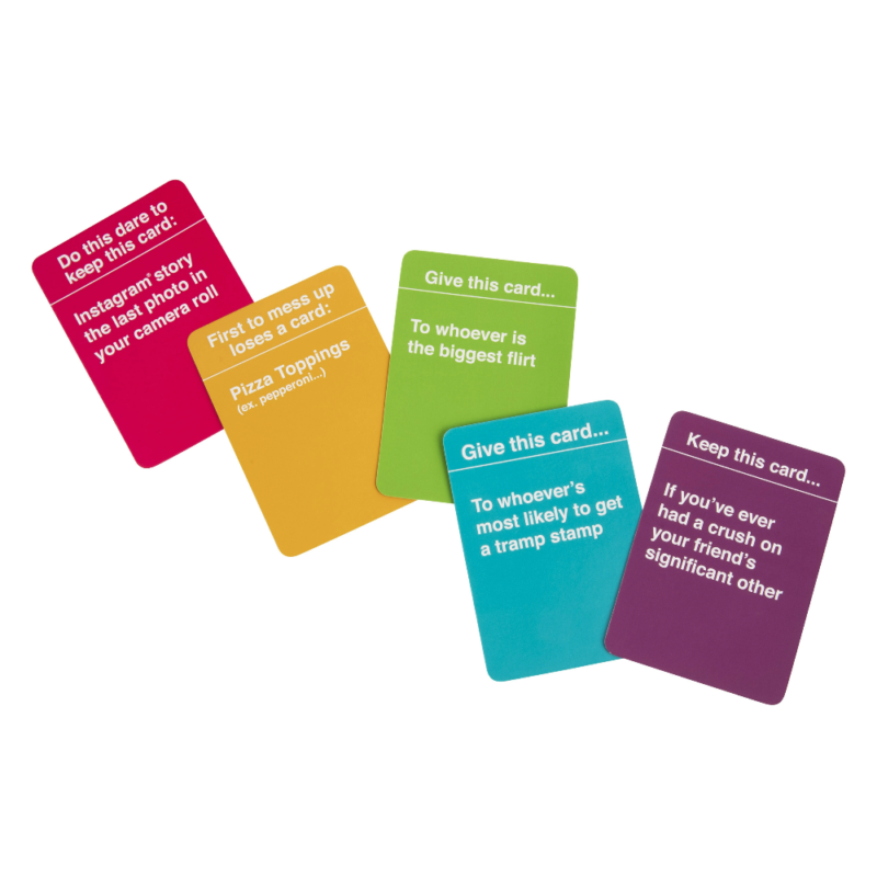 Kako se igra? Igračice se međusobno natječu u tome koja će sakupiti najviše kartica. Bacanje kocke bira boju kartice koja se uzima s vrha. Potom se mora ispuniti zadatak koji je zadan na kartici, a pobjednica je ona koja prva sakupi 25 kartica. Tako možeš naletjeti na karticu koja kaže: “Ovu kartu daj onoj koja ima najzgodnijeg tatu” ili “Kako bi zadržala ovu karticu dopusti osobi s tvoje lijeve strane da s tvog mobitela pošalje poruku kome god želi”. Kužiš u čemu je štos?