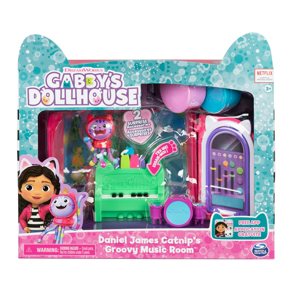Uredi originalnu Gabby’s Dollhouse Purrfect kuću za lutke Catnipovom glazbenom sobom, Carlitinom sobom za učenje o prometu ili Baby Boxovom sobom za kreativnu igru (prodaju se odvojeno). Setovi su prepuni zanimljivih detalja autentičnog izgleda pa ćeš vrlo često pomisliti da si i sama dio čarobnog svijeta Gabby’s Dollhouse.