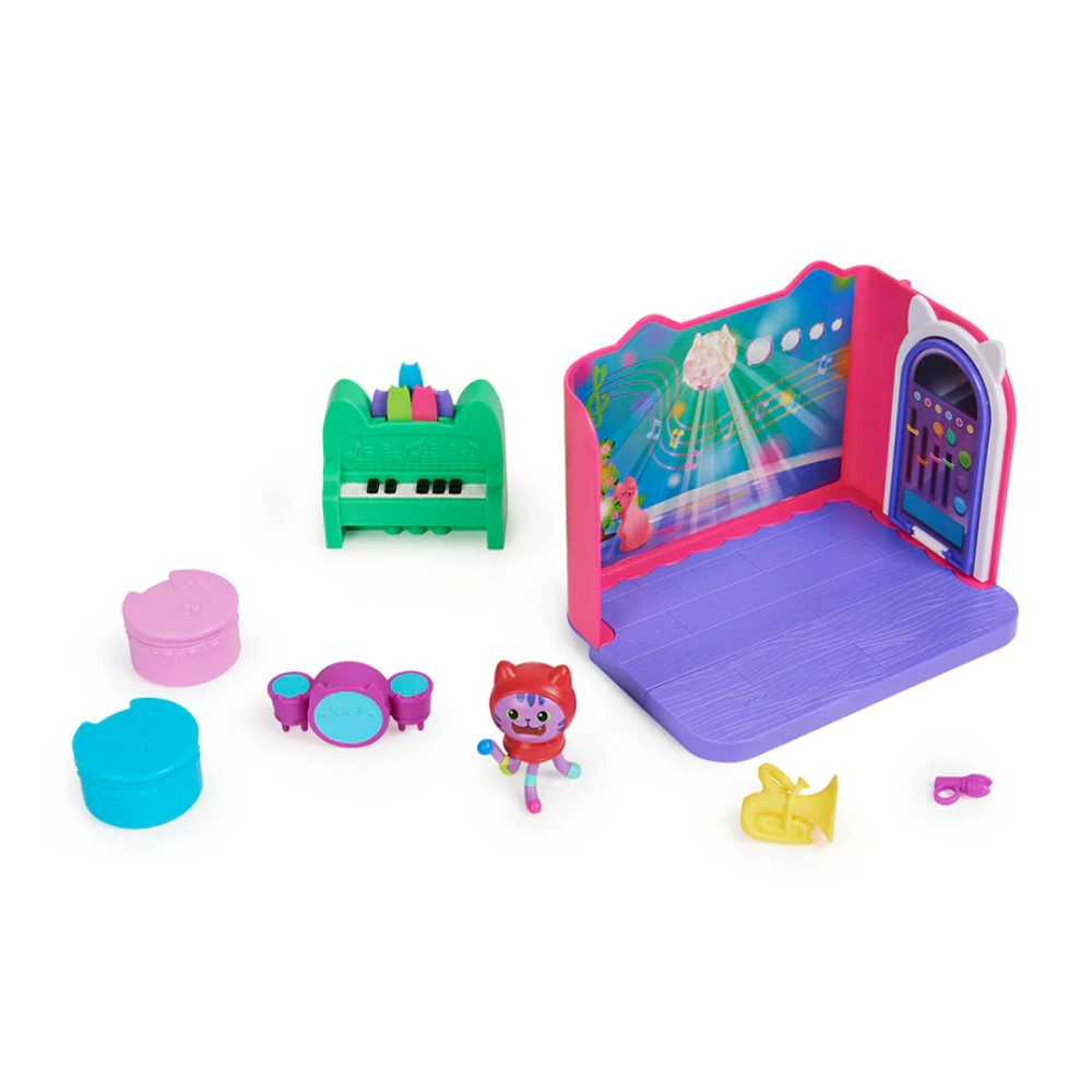 Setovi sadrže po jednu od figurica Gabbynih omiljenih maca – Daniel James Catnipa, najpoznatijeg DJ-a u mačjoj ekipi, Carlitu – simpatični mačji auto koji Gabby i njene mace redovito vozi prema uzbudljivim pustolovinama te Baby Boxa – najmanju, ali i najkreativniju macu među mačjom ekipom.