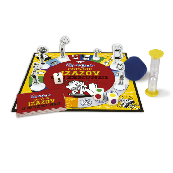 Igra se sastoji od 90 kartica za igru sa originalnim ilustracijama autora popularnog serijala Gregov dnevnik Jeffa Kinneyja te je idealan poklon za sve obožavatelje ovih zanimljivih dječjih romana. Izazovi sa loptom, sa obojenim kockama te oni koji tevtjeraju na razmišljanje samo su neki od zadataka koji će tebe i tvoje društvo okupirati satima. Priprema, pozor… POŽURI!