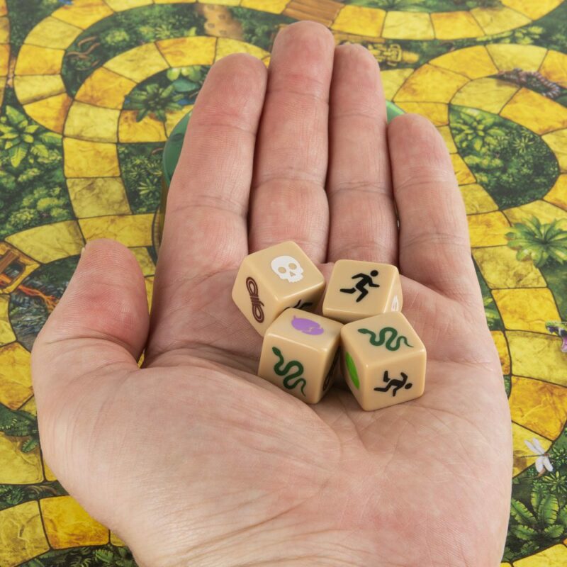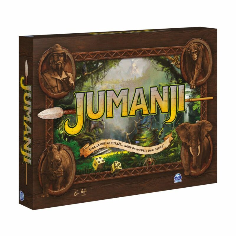 Društvena igra Jumanji dizajnirana je za 2 do 4 igrača i pogodna je za djecu stariju od 8 godina, a temelji se na pustolovinama istoimenog filma.