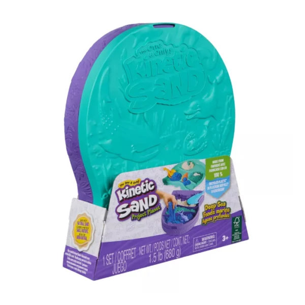 Project Planet linija nudi posebno dizajniran set originalnog kinetičkog pijeska, napravljenog od reciklirane plastike iz oceana! U kutiji te čeka 680 g bijelog, tirkiznog i plavog pijeska, ali i mnoštvo iznenađenja zakopanih u njegovim slojevima!
