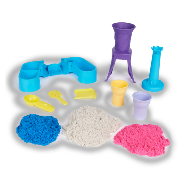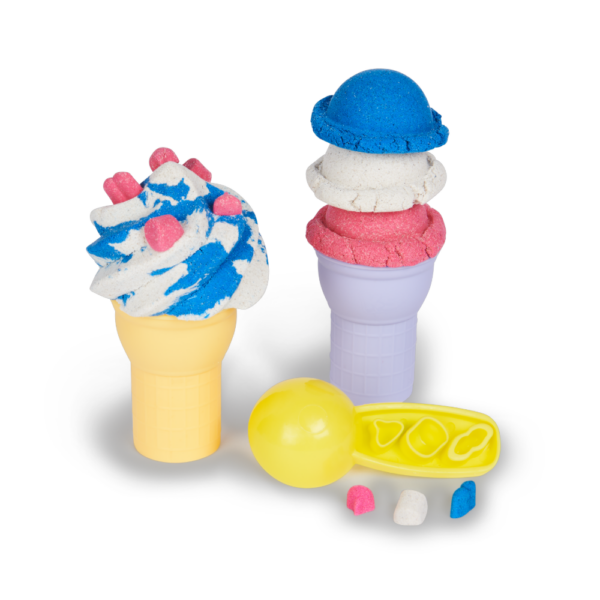 - Set Slastičarnica sadrži: originalni kinetički pijesak, 6 alata za oblikovanje uključujući i dva plastična korneta za sladoled te alat za oblikovanje, upute za igru