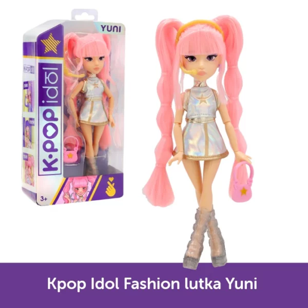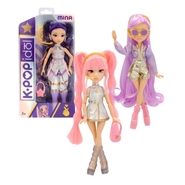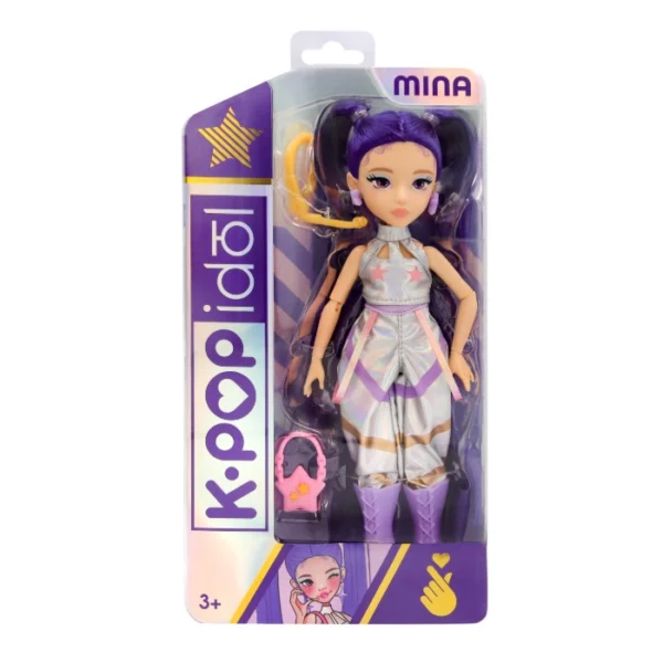 - Sadržaj pakiranja: 1x K-Pop modna lutka (Mina, Yuni ili Nari), 1x scenski outfit, 1x par obuće, 1x headset mikrofon, 1x sunčane naočale, 1x torbica