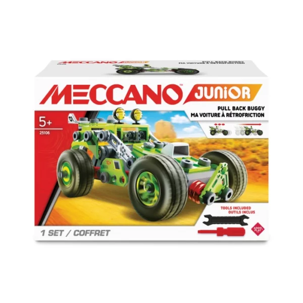 Meccano konstrukcijski set prilagođen je djeci od 5 godina nadalje koji na jednostavan način uvodi mališane u svijet sastavljanja i mehaničkog povezivanja dijelova korak po korak.