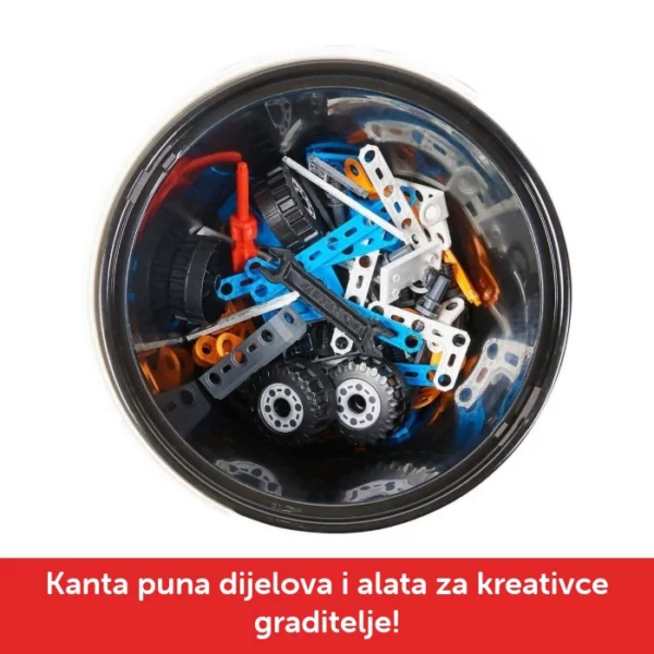 Meccano Junior velika kanta s dijelovima odličan je izbor ukoliko vaš mališan voli istraživati, sastavljati te iznova smišljati nove konstrukcije.