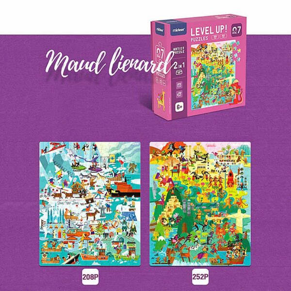 Level Up serija dječjih puzzli dijele se težinom i kompleksnošću prema uzrastu djeteta. Ideja je da ono može zavoljeti slaganje puzzli samo ako su primjerene njegovoj dobi. U “Umjetnička djela” pakiranju dolaze 2 različite vrste puzzli za složiti.