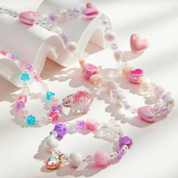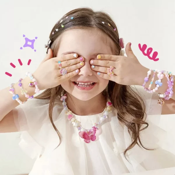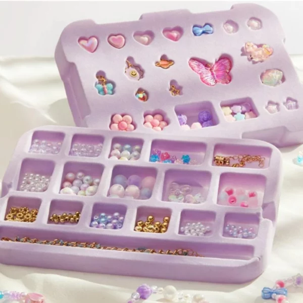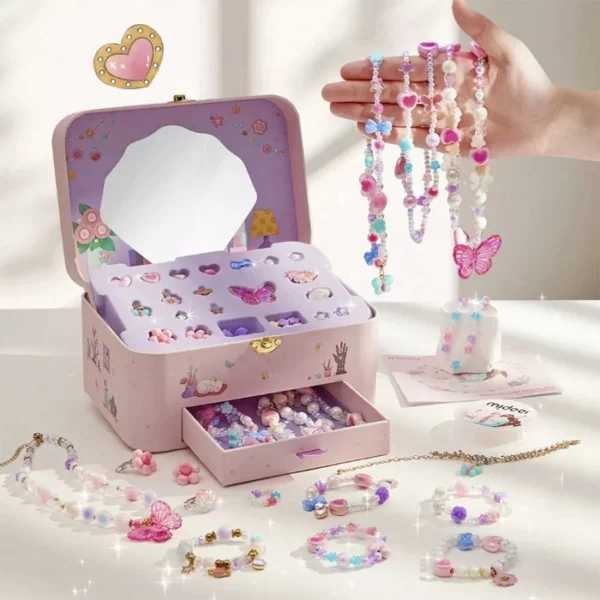 Perlice s posebnim premazom sjaje u vibrantnim bojama, a podesivi zatvarači omogućuju udobno nošenje i lako prilagođavanje veličine. Dobro organizirani pretinci čuvaju elemente urednima, a ugrađeno ogledalo i male ladice pretvaraju cijeli set u pravu mini radionicu – i kutijicu s blagom.