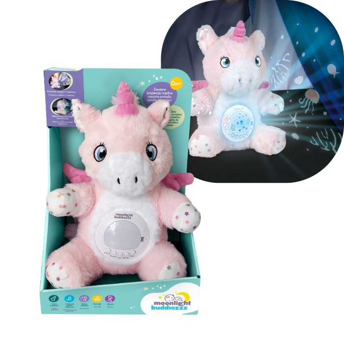 Moonlight Buddiezzz prošireno izdanje 3u1 igračka za mame i bebe, jednorog