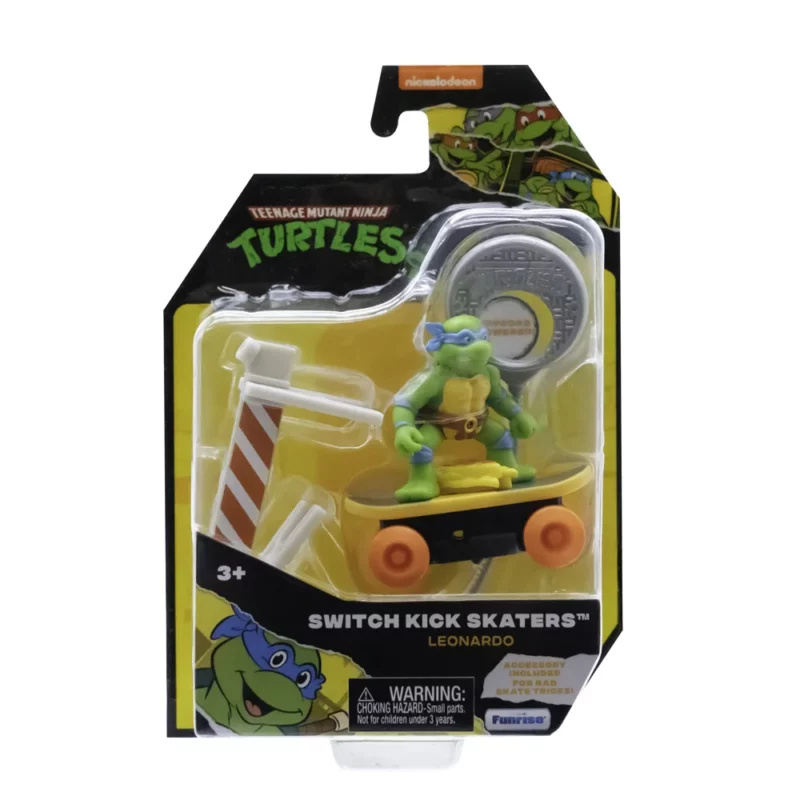 U pakiranju uz svaku figuricu dolazi i neki od dodataka za igru, te poluga za aktivaciju skatea. Testiraj svoje skaterske vještine i pokušaj balansirati figuricu na dodacima za igru priloženi u setu! Ove figurice komplementarne su i s Turtle Madness Skate Park setom za igru te Mini Madness Skate Park setom (prodaju se odvojeno).