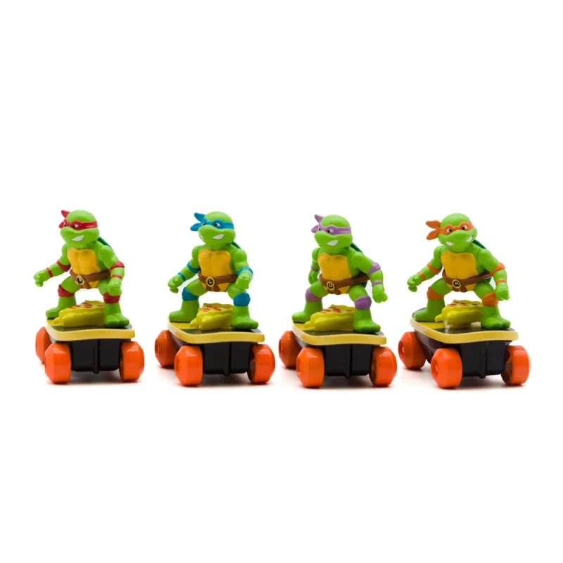 Nindža kornjače ne mogu bez svojih skateboarda pa tako ni igra s omiljenim kornjačama nije potpuna ako se ne posjeduje ovakav osnovni model akcijske figurice s likovima Leonarda, Michelangela, Donatella ili Raphaela. Prepoznatljiv izgled, akcijska poza i skateboard s kojim možeš izvoditi razne skejterske vratolomije razlozi su da odmah ugrabiš barem jedan primjerak ove zabavne dječje igračke.