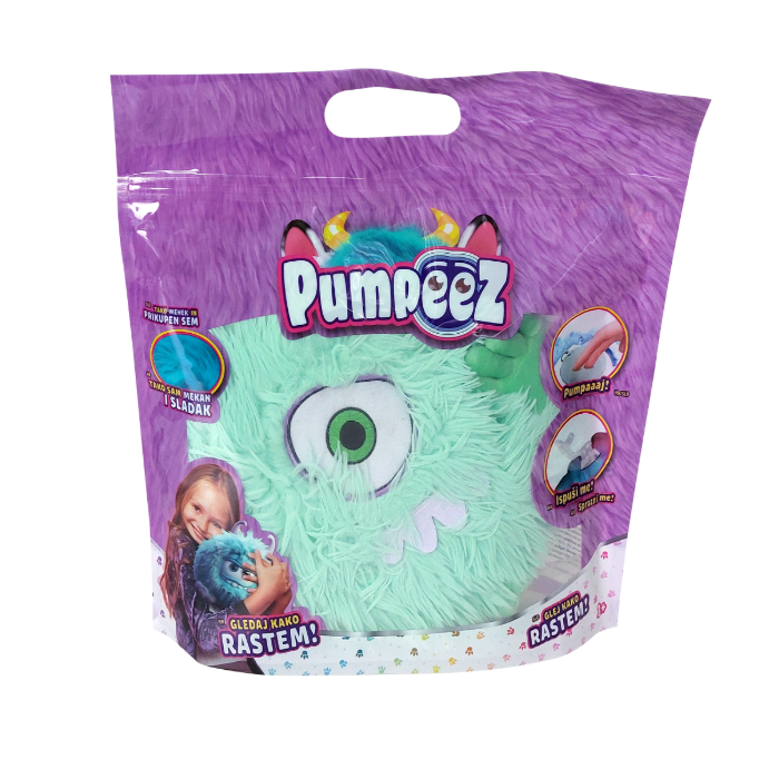 Upoznaj Pumpeez plišane igračke – zabavna šarena čudovišta koja možeš napuhati i pretvoriti u čupave lopte za igru! Na prvi pogled izgledaju - pa ispuhano, a kad ih napumpaš… zabava doslovno poleti u zrak! Svaki Pumpeez se jednostavno transformira zahvaljujući zračnom punjenju – mekan izvana, spreman za bacanje, skakanje i beskrajnu igru.U kolekciji te čeka šest neodoljivih likova – sakupi ih sve i uživaj u veseloj i aktivnoj igri!