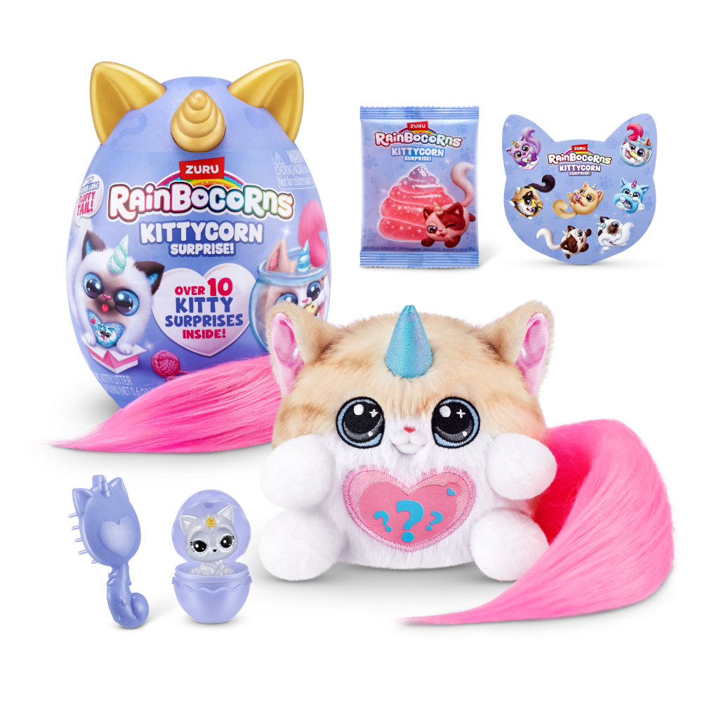 Novo izdanje Rainbocorns Kittycorn jaja iznenađenja donose još uzbudljivije dodatke i još slađe i mekše plišance! Svako jaje iznenađenja krije više od 15 dodataka za igru, uključujući preslatkog Kittycorn plišanca kojeg možeš maziti i igrati se s njim.