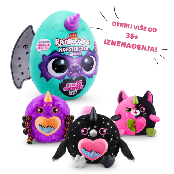 Svako veliko jaje iznenađenja krije više od 35 nevjerojatnih iznenađenja! Unutar jajeta pronaći ćeš čupavog Monstercorna s posebnim čarobnim dodirom – šareni rog, mekano krzno i spooky dodatke! Ove preslatke zvjerke spremne su za avanture, nestašluke i igru.