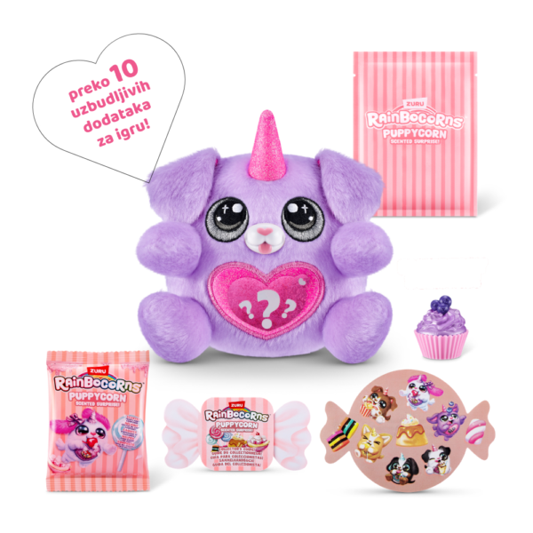 - Sadržaj: veliki plišani Puppycorn, Boo-Boocorns, Puppy Poop ljigavac, mirisne naljepnice i ostali dodaci za igru (više od 10 iznenađenja)