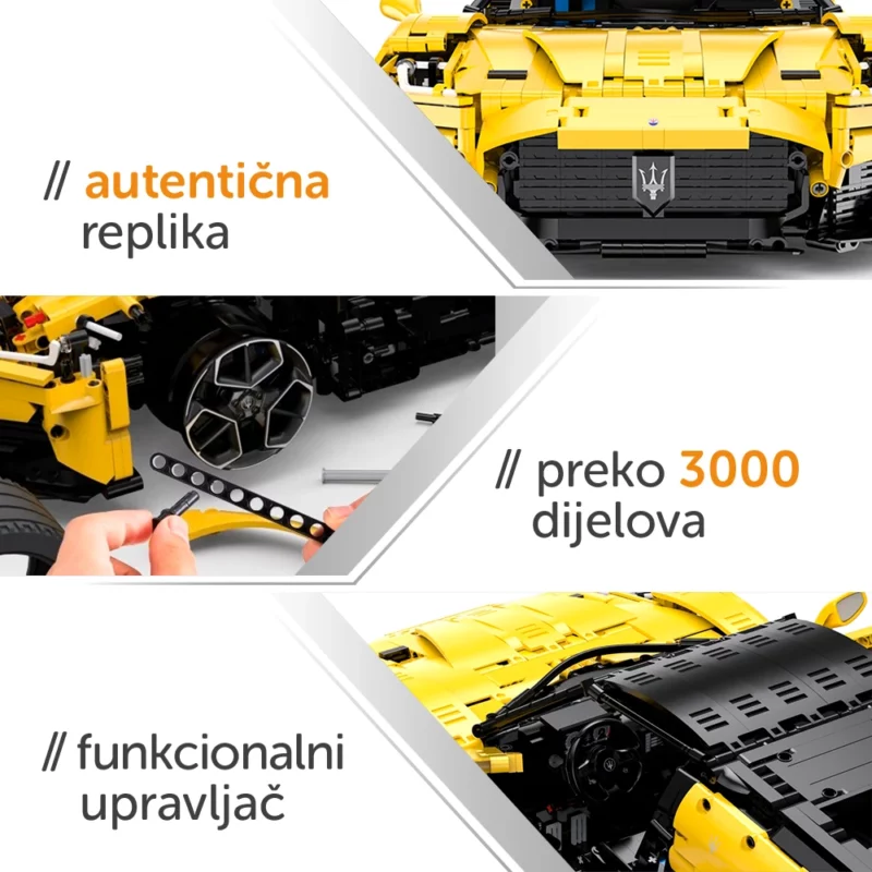 S preko 3 tisuće dijelova, ovaj set nudi izazov koji zahtijeva koncentraciju te kroz iskustvo sastavljanja nadograđuje tehnička znanja. Maserati MC20 je estetski vrlo zanimljiv automobil koji pruža ispunjujući osjećaj postignuća u svakom koraku njegovog sastavljanja. Ovaj superautomobil zasjati će u vašem domu i činiti trajni predmet divljenja vaših posjetitelja!