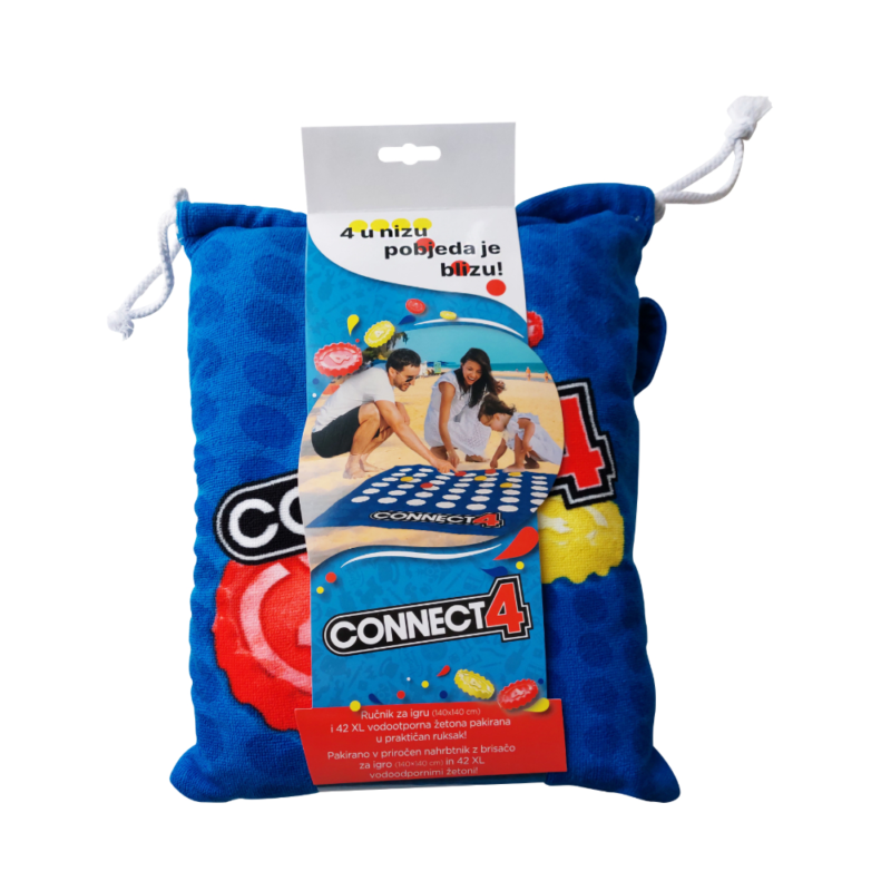 Connect4 je društvena igra u kojoj je glavni zadatak spojiti određen broj točki izabrane boje prije protivnika i tako steći prednost u igri. U ovom izdanju dobivaš zabavnu društvenu igru otisnutu na velikom udobnom ručniku za plažu, što znači da omiljenu igru možeš zaigrati bilo gdje na otvorenom – plaža, park, kampiranje, roštilj s prijateljima u vlastitom dvorištu…