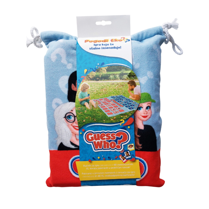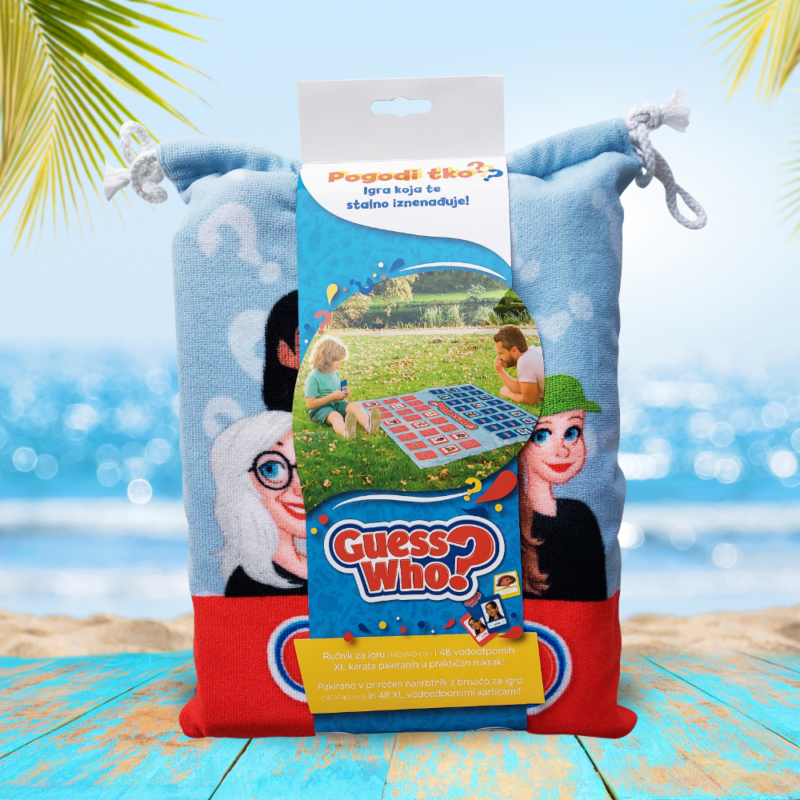 Guess Who? je popularna društvena igra koja je zaslužna za mnoštvo sati smijeha u ekipama diljem globusa. Igra pogađanja prenesena je na veliki ručnik za plažu kako bi zabavu nosio sa sobom. U ovom paketu dobivaš zabavnu društvenu igru otisnutu na velikom ručniku za plažu, što znači da je možeš zaigrati bilo gdje na otvorenom – plaža, park, kampiranje, roštilj s prijateljima u vlastitom dvorištu…