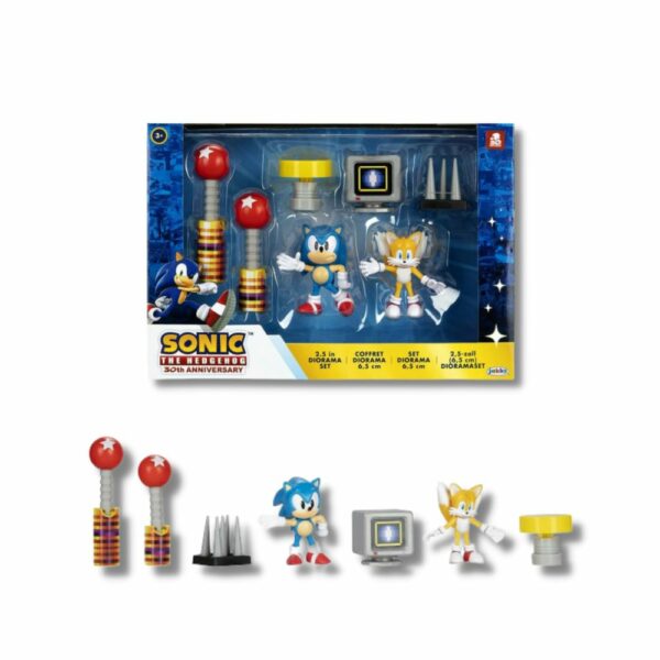 Ponovno odigraj neke od najluđih scena iz Sonic The Hedgehog serijala uz diorama set za igru sa figuricama Sonica i Tailsa koji igraju glavne uloge u jurećoj i uzbudljivoj zabavi! U setu se skriva i nekoliko dodatka koji zabavu čine još boljom i autentičnijom. Pojuri punom brzinom naprijed!