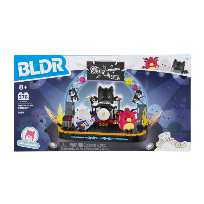Zahvaljujući posebnoj SquishBrik tehnologiji njihov se trbuščić može pritisnuti baš kao kod plišane verzije. BLDR koncert savršeno se uklapa uz ostale setove iz iste linije (prodaju se zasebno), a i kompatibilan je s većinom kockica za slaganje poznatih brandova.