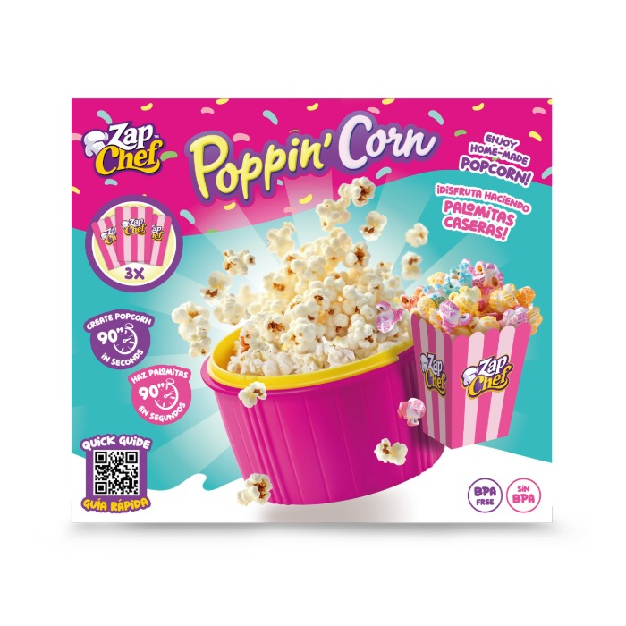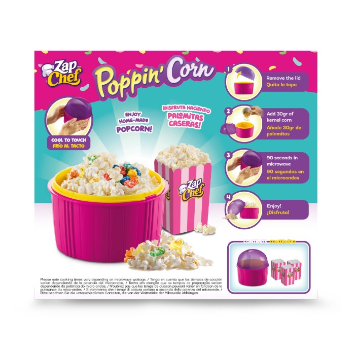 Zap Chef set za kokice pretvara pripremu omiljenog snacka u brzu i zabavnu malu kućnu kino rutinu. Dovoljno je dodati kukuruz u zrnu, zatvoriti poklopac i staviti posudu u mikrovalnu pećnicu, a nakon otprilike 90 sekundi kokice su spremne za posluživanje.